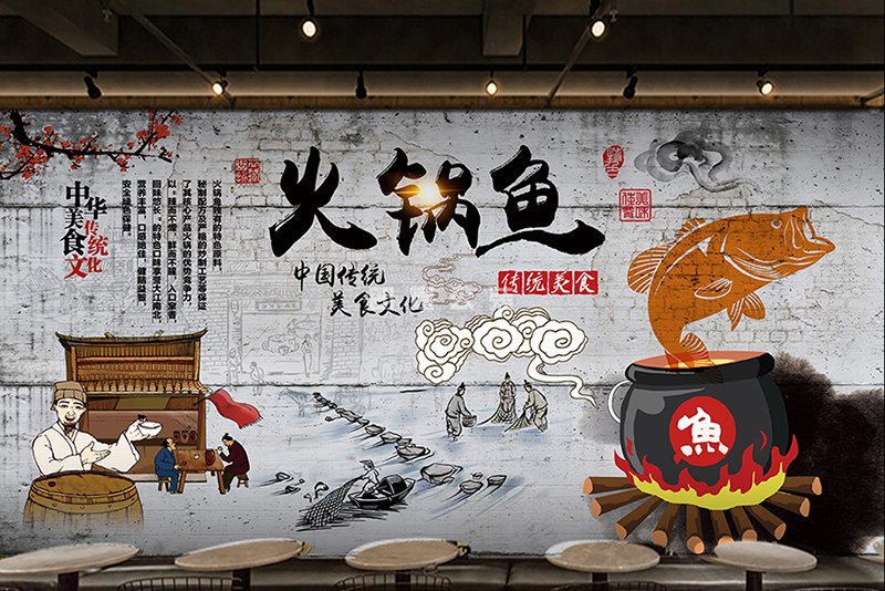 眾所周知,火鍋是四川、重慶、成都的獨創美食,歷史悠久,是一種老少皆宜的食物??纱蠹伊私怅P于火鍋的墻面墻繪設計嗎?墻繪是一種在清水模涂料上繪制的壁畫,是將彩繪藝術與