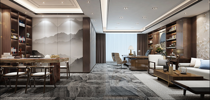 文化融合:我們?cè)谥惺斤L(fēng)格的設(shè)計(jì)中,巧妙融入現(xiàn)代元素,如簡約的線條、明亮的燈光等,讓傳統(tǒng)與現(xiàn)代完美交融。這樣的設(shè)計(jì)不僅保留了中式風(fēng)格的古典美,還賦予了其新的生命力。對(duì)于傳統(tǒng)文化企業(yè)、金融機(jī)構(gòu)等追求穩(wěn)重和底蘊(yùn)的企業(yè)而言,中式風(fēng)無疑是最佳選擇。